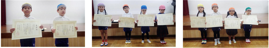 家読コンクールの優秀賞受賞保護者4名、優良賞受賞園児2名と保護者4名の表彰は2月25日(水)の朝礼で表彰式を行いました。保護者の方の受賞は園児が代わりに賞状を受け取りました。